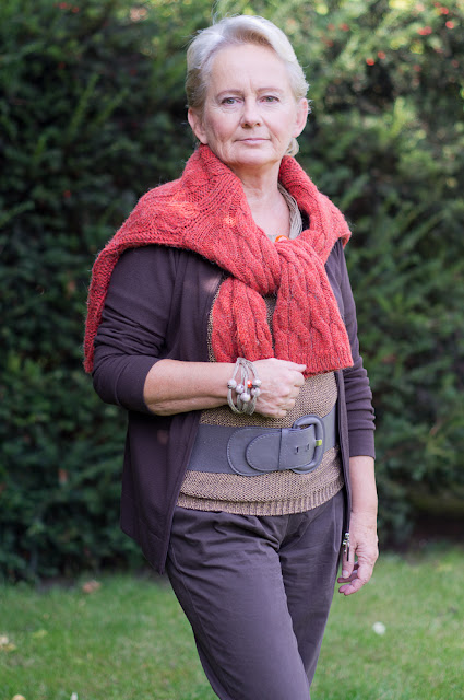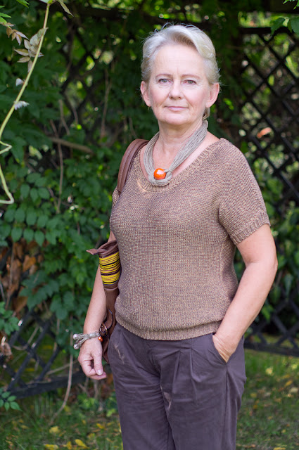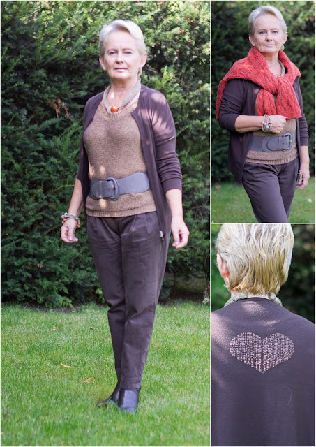 Brązowy sweterek dostałam od Bratanicy, pomarańczowy zakupiłam na bazarze w Pułtusku,