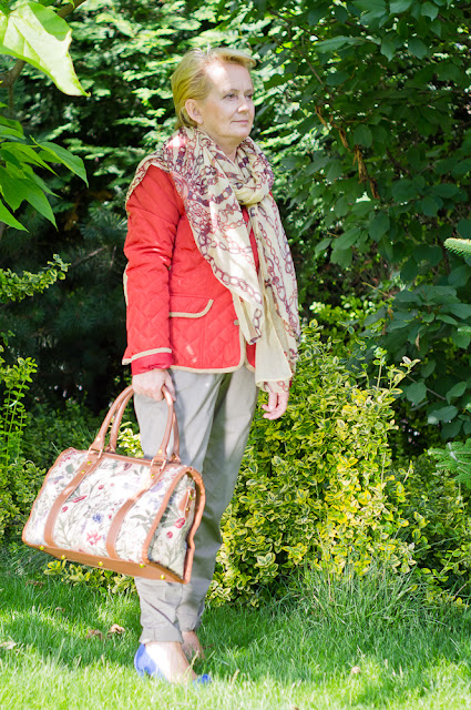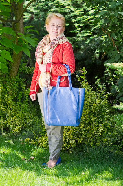 Potem jednak zmieniłam zdanie i dodałam inną torbę /kupiłam w drogerii we Wrocławiu/ i kobaltowy szal.