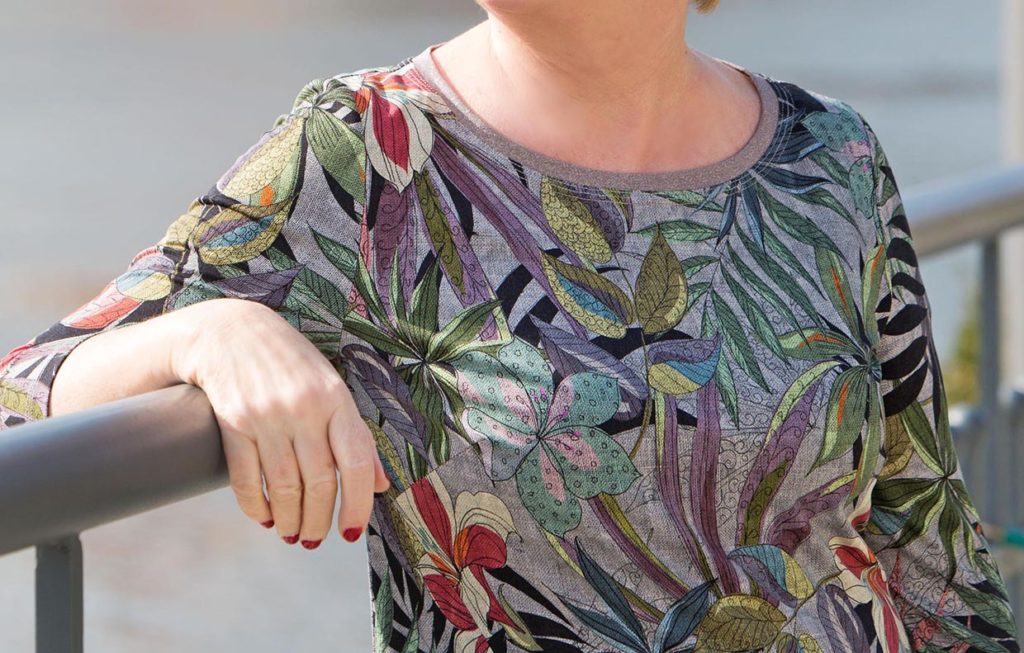 Trafiłam na dwie projektantki (i jednocześnie siostry) Agnieszkę (60l) i Beatę (65l), które razem od 29 lat prowadzą własną firmę: abnahlik.pl. Więcej możecie przeczytać o nich tutaj. Ubrania, które projektują są nietuzinkowe i skuszą nie tylko młode dziewczyny, ale także dojrzałe kobiety.