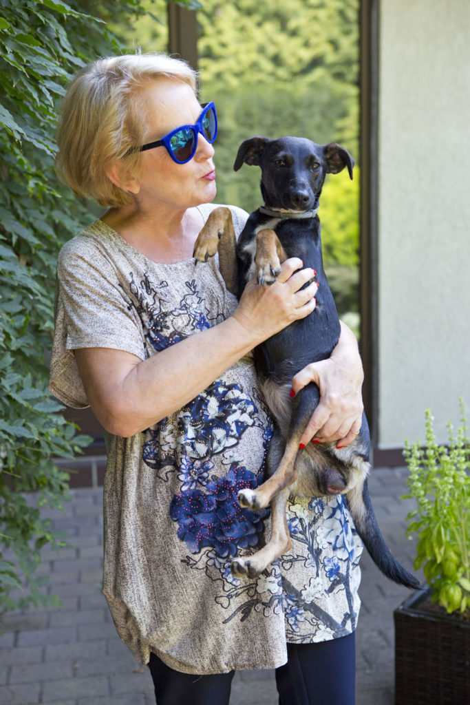 Tunikę uwalniamy od paska, przez co robi się bardziej domowa i  nadaje się teraz do zabawy z psem.