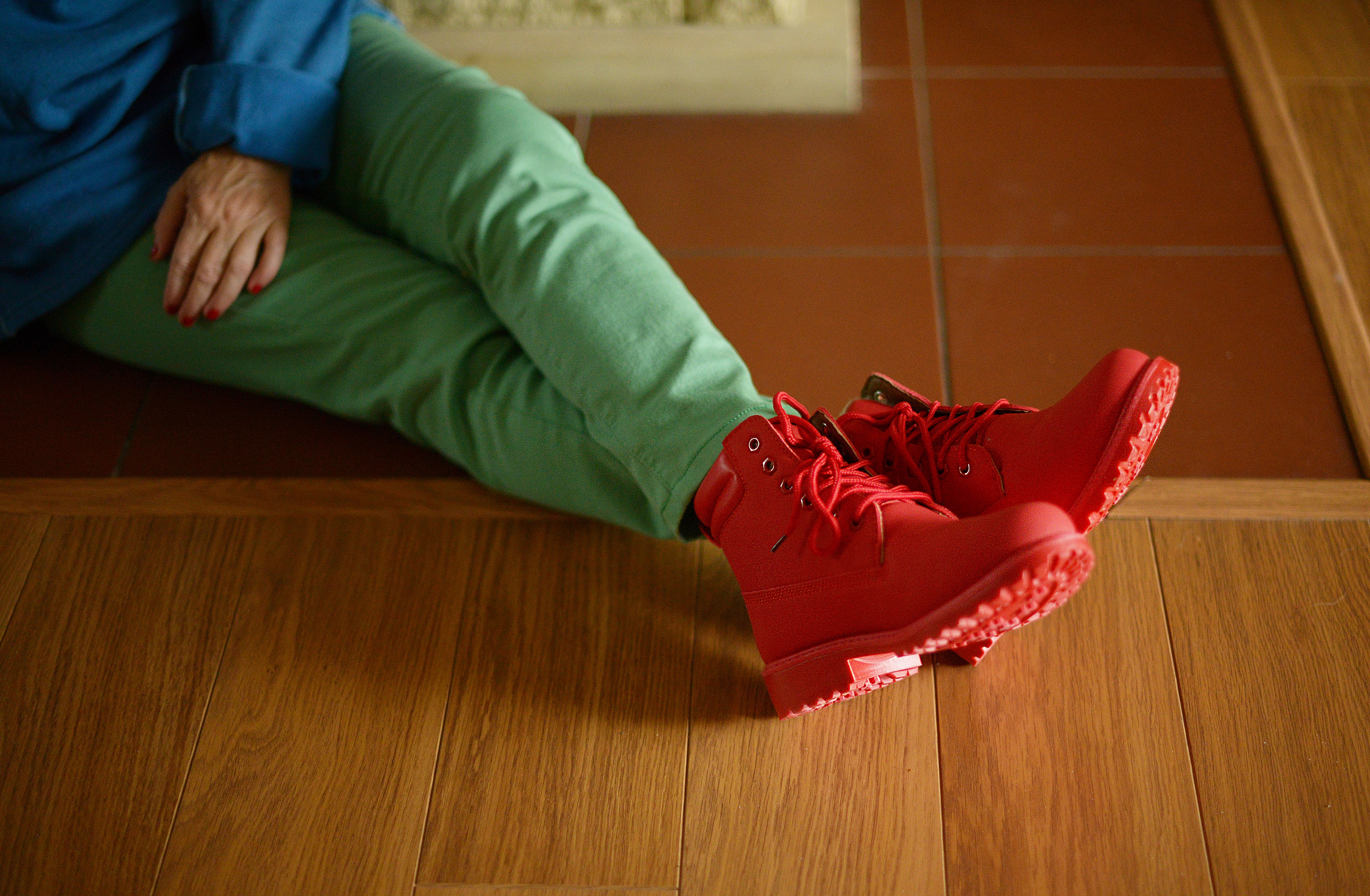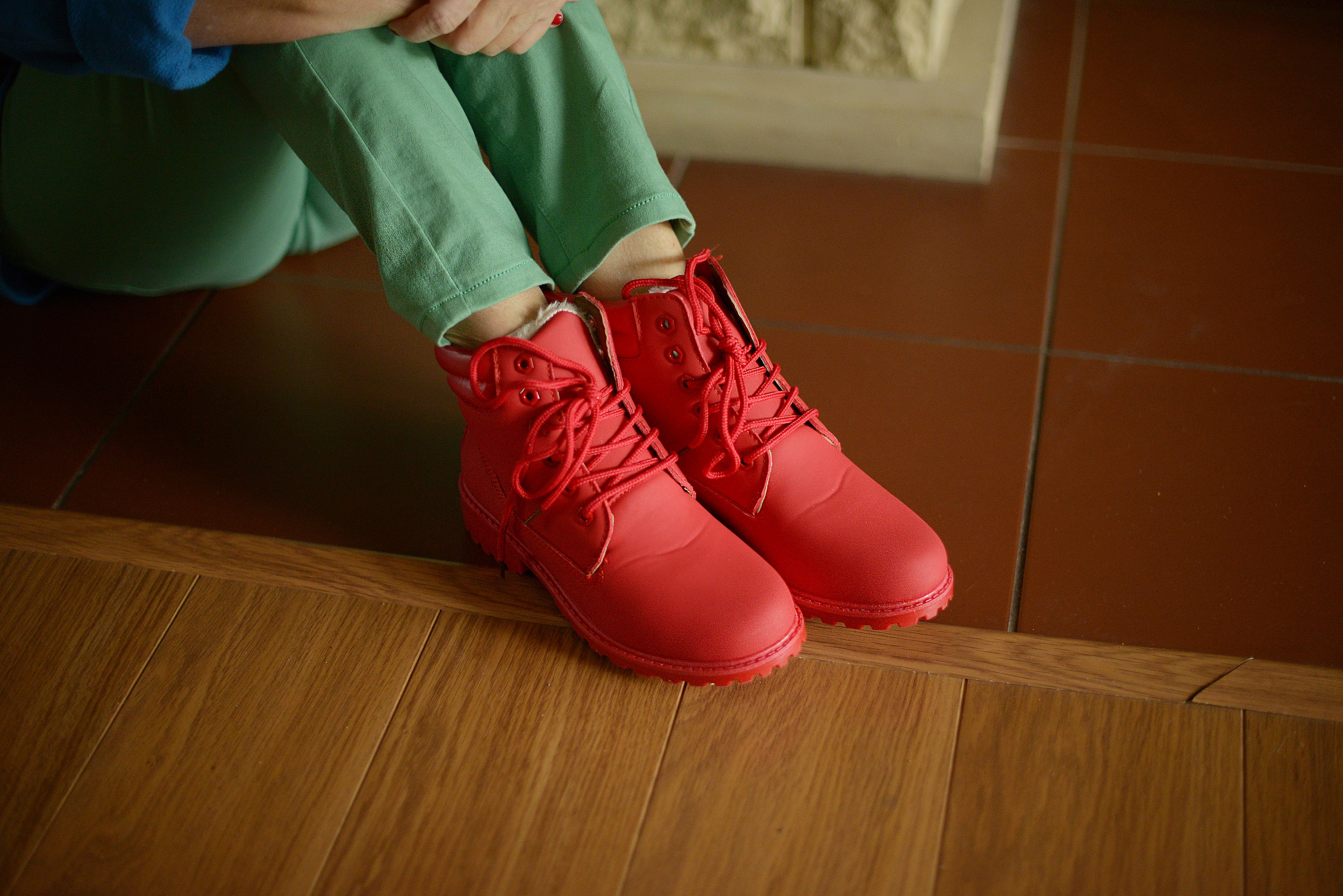 A wracając do stylizacji, to do tej bardzo wygodnej bluzy, w której gra w filmie główny bohater, włożyłam także bardzo wygodne zielone spodnie oraz czerwone buty, które są jeszcze wygodniejsze.