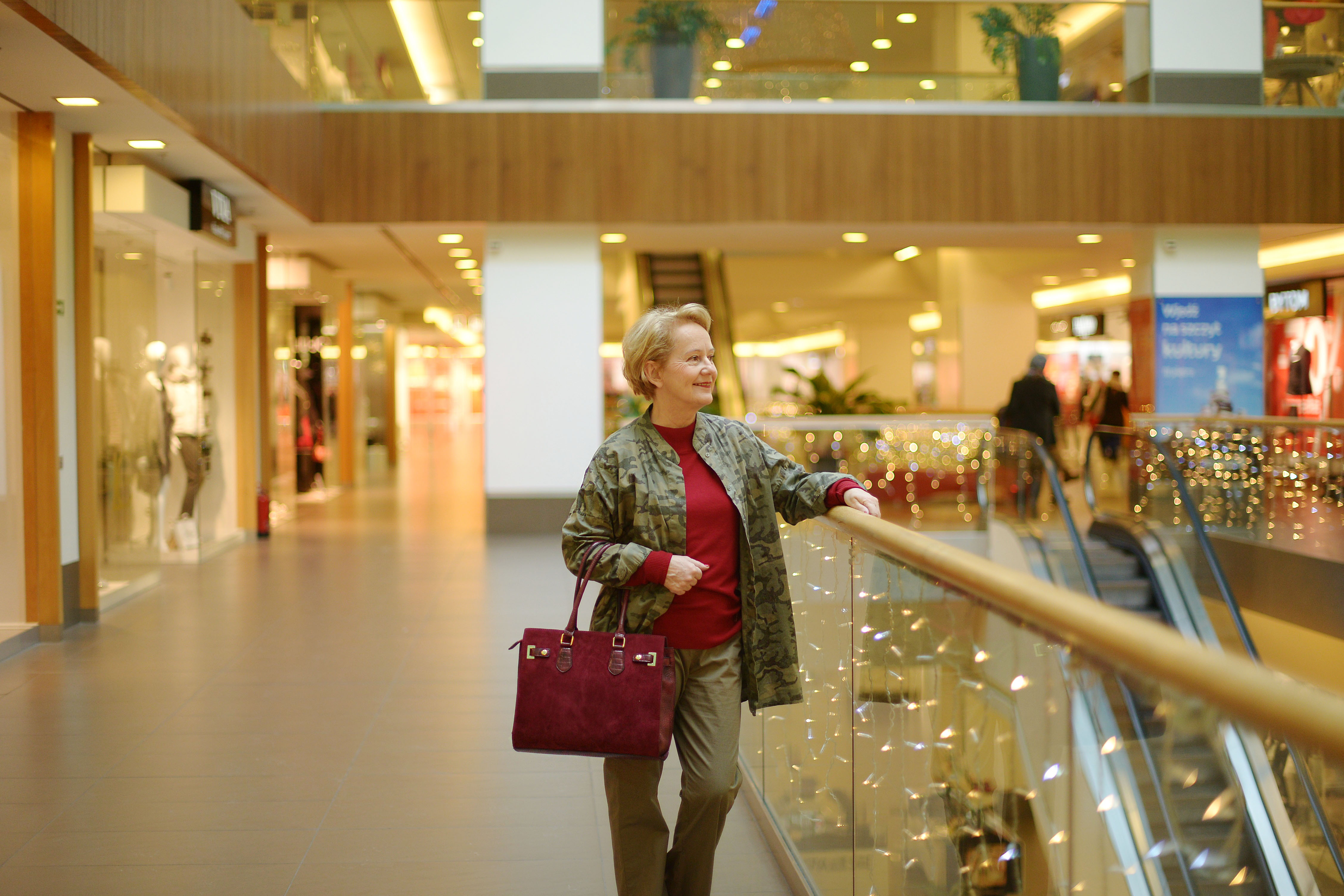 Bordowe botki dopełniają całości.