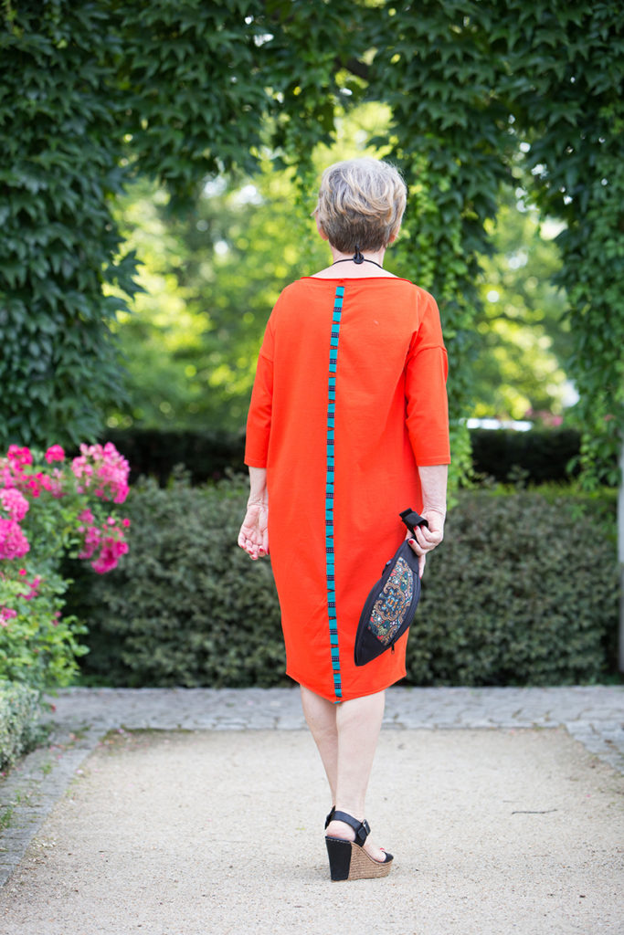 Aby nie było nudno, sukienka ma z tyłu wszyty turkusowy pasek. Zresztą wiele ich produktów ma nietypowe wszywki i to bardzo mi się podoba, bo podkreśla oryginalność tych ubrań.