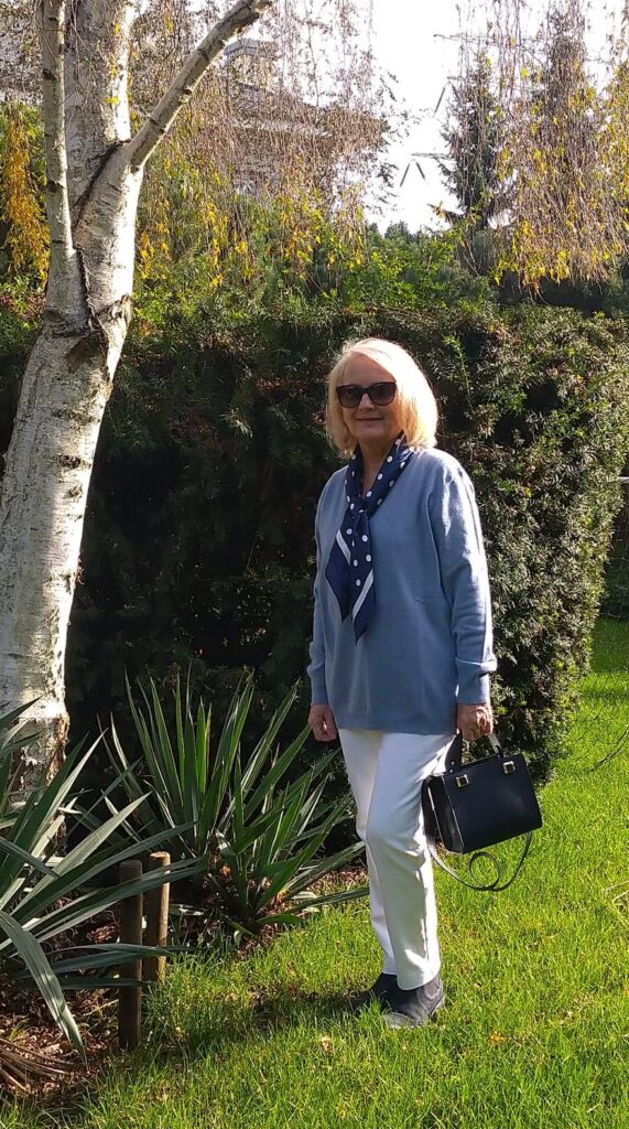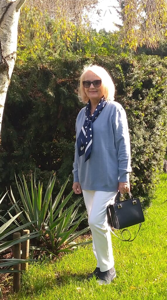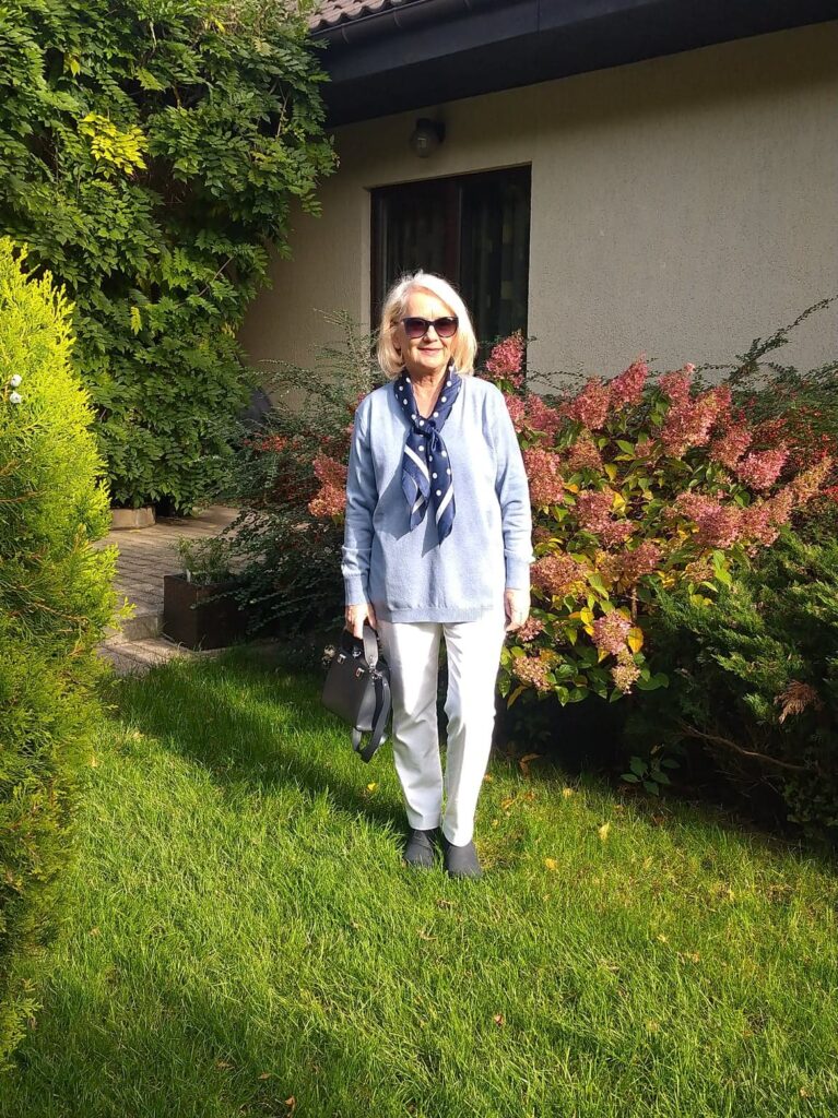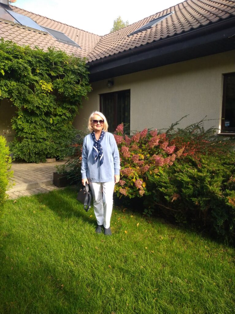 Bardzo dawno nie było tutaj stylizacji. Uważałam, że czas pandemii to nie jest najlepsza pora na rozmowę o modzie i ubraniach. Dlatego zaczęłam pisać o gotowaniu i założyłam własny kanał na You Tube, gdzie mówię na różne interesujące Was tematy. Teraz już przywykliśmy trochę do okoliczności, choć nie jest lepiej, a siedząc w domu coraz częściej siadamy przed komputerem i oglądamy różne interesujące nas strony. Czytelniczki mojego bloga i moje klientki poprosiły mnie wobec tego, aby co jakiś czas zaprezentować na blogu kilka stylizacji.