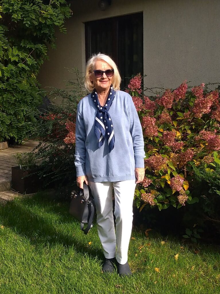 Moim zdaniem zamiast szaro-burych ubrań warto ubierać się jeszcze w jasne kolory, bo to odświeża wizerunek i odmładza szczególnie osoby dojrzałe.