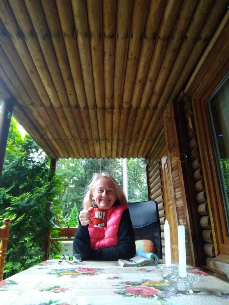 Posiłki, kawę i herbatę (czasem ze świeżutkimi jagodziankami) piliśmy na tarasie i w ten sposób prawie cały dzień przebywaliśmy na świeżym powietrzu.