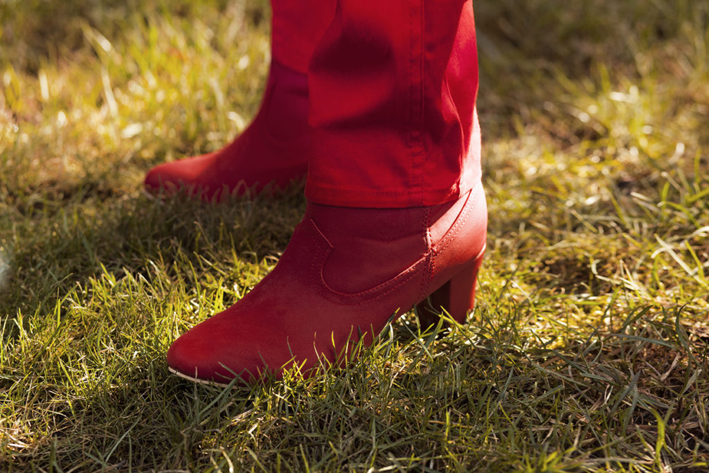 Czerwone, krótkie botki, to zakup sprzed kilku lat. Kupiłam je spontanicznie i wyobraźcie sobie, że dopiero dzisiaj nadarzyła się druga okazja, aby je włożyć (leżały zapomniane w szafie).