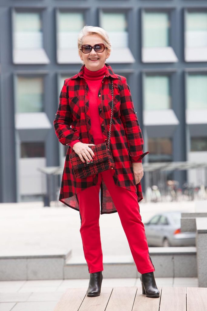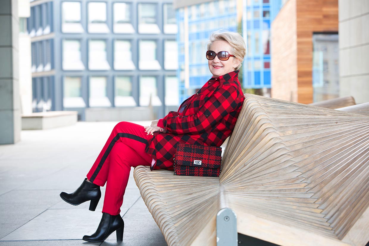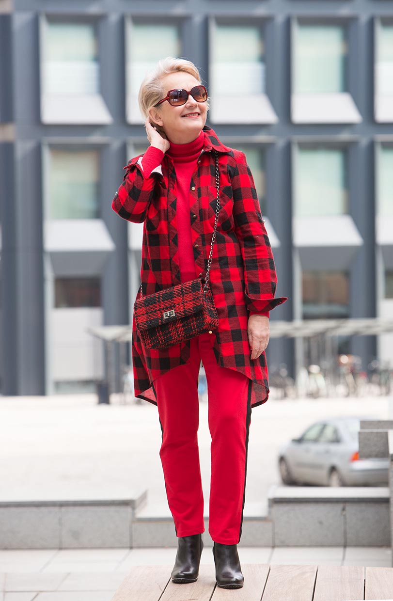 Torebkę w kratę i czarne botki miałam w szafie, więc nie było to trudne.