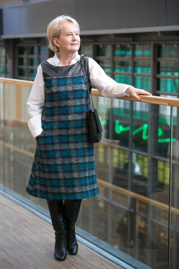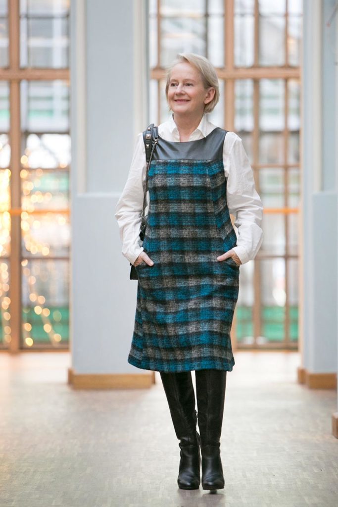 Dzień dobry, ta sukienka, to klasyczny bezrękawnik, fason znany i lubiany i bardzo praktyczny . Zależnie od tego, co włożymy pod sukienkę, może być na codzień lub bardziej wizytowy. Jeden szczegół wg mnie psuje efekt- niezgranie kratki na bocznych szwach. Pozdrawiam 🙂