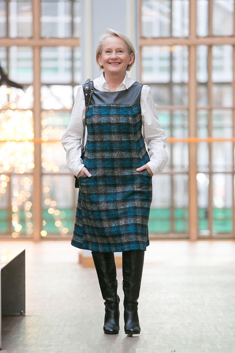 Także w tej sukience zaprojektowałam wygodne boczne kieszenie. Jej fason bardzo sprzyja figurze „jabłka” i „gruszki” bez względu na rozmiar.