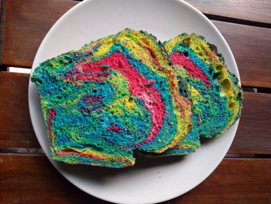 Tym razem upiekłam go dla wnucząt używając barwników spożywczych. Smakuje nadal wspaniale, a wygląda ciekawie.