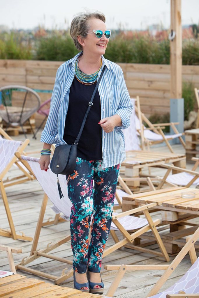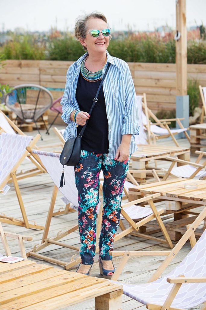 I bardzo mi się podoba zestawienie paseczków koszuli z kwiatami spodni! Ekstra!