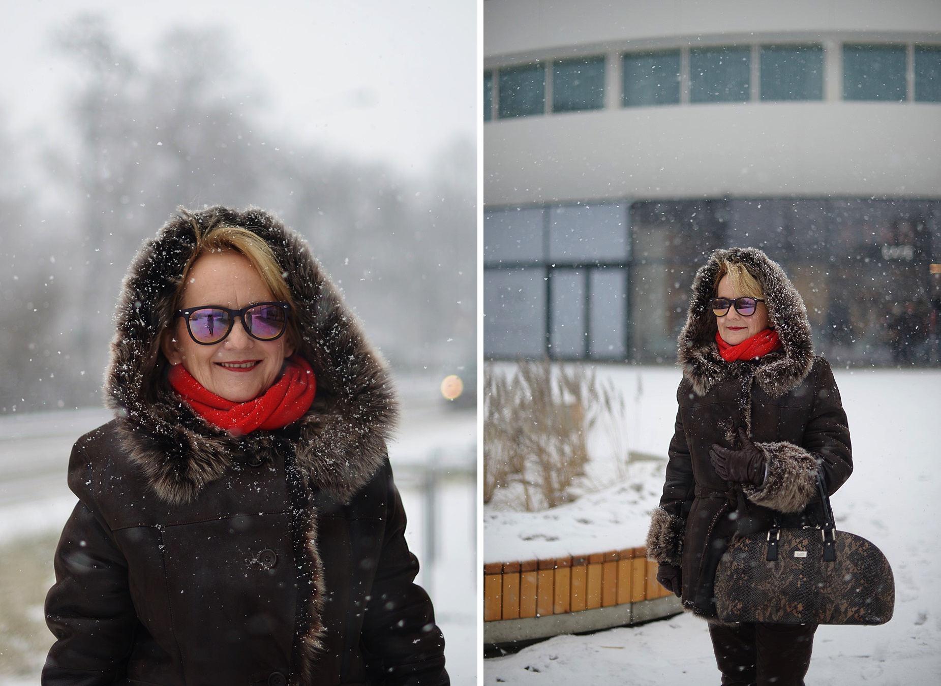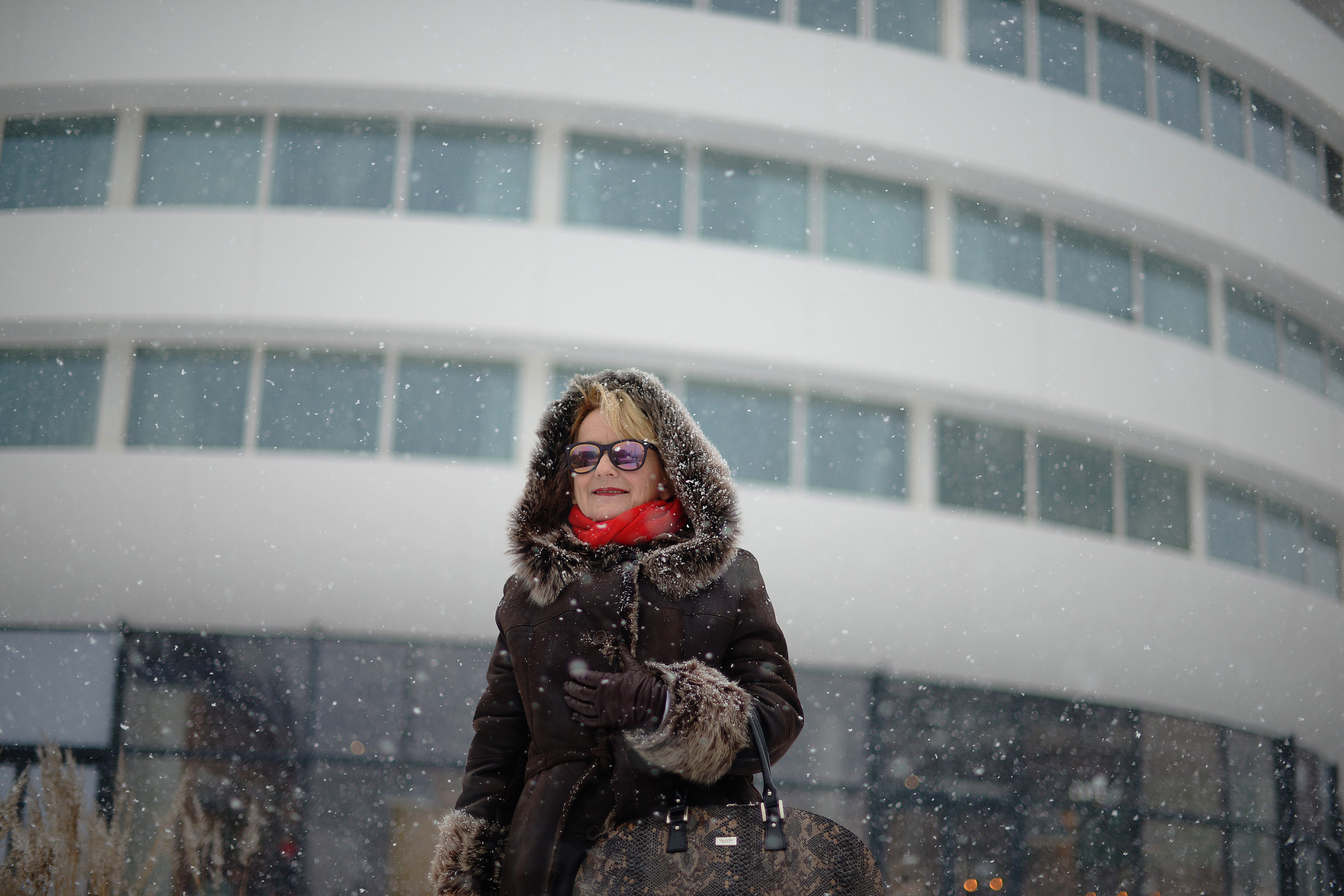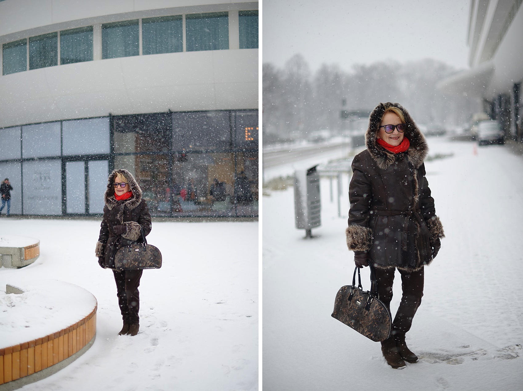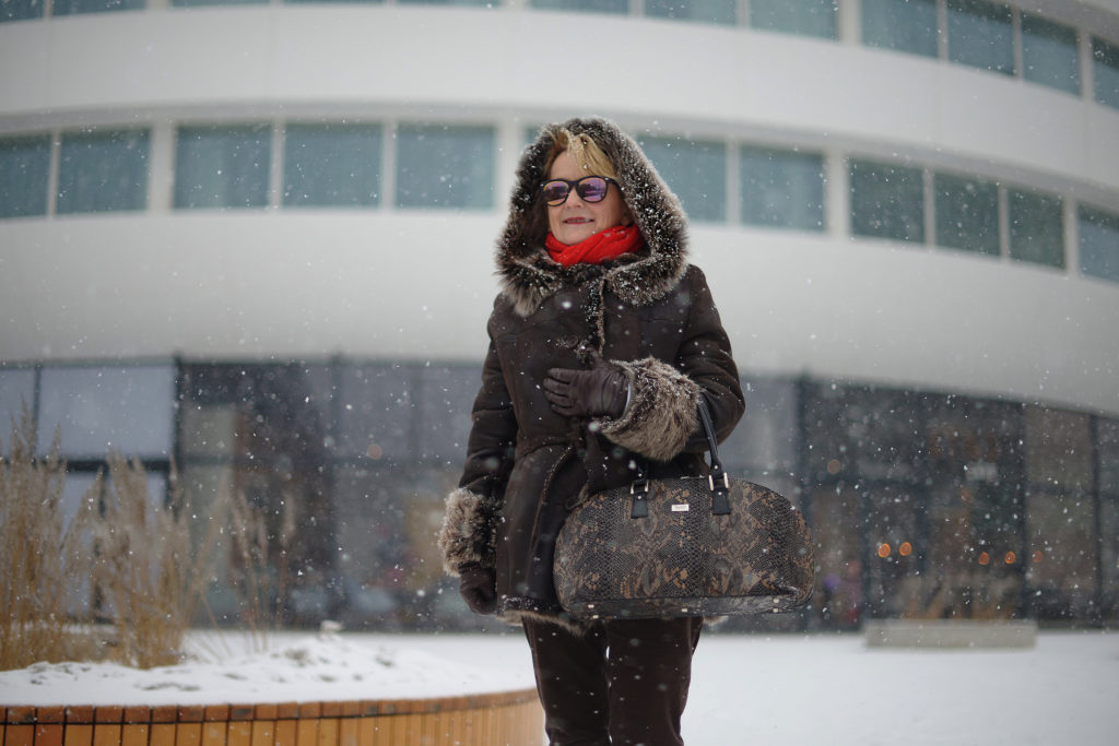 Część drogi jechałam autobusem, część szłam piechotą i dlatego musiałam ubrać się bardzo ciepło. W międzyczasie zaczął padać śnieg i rozpętała się prawdziwa zamieć.