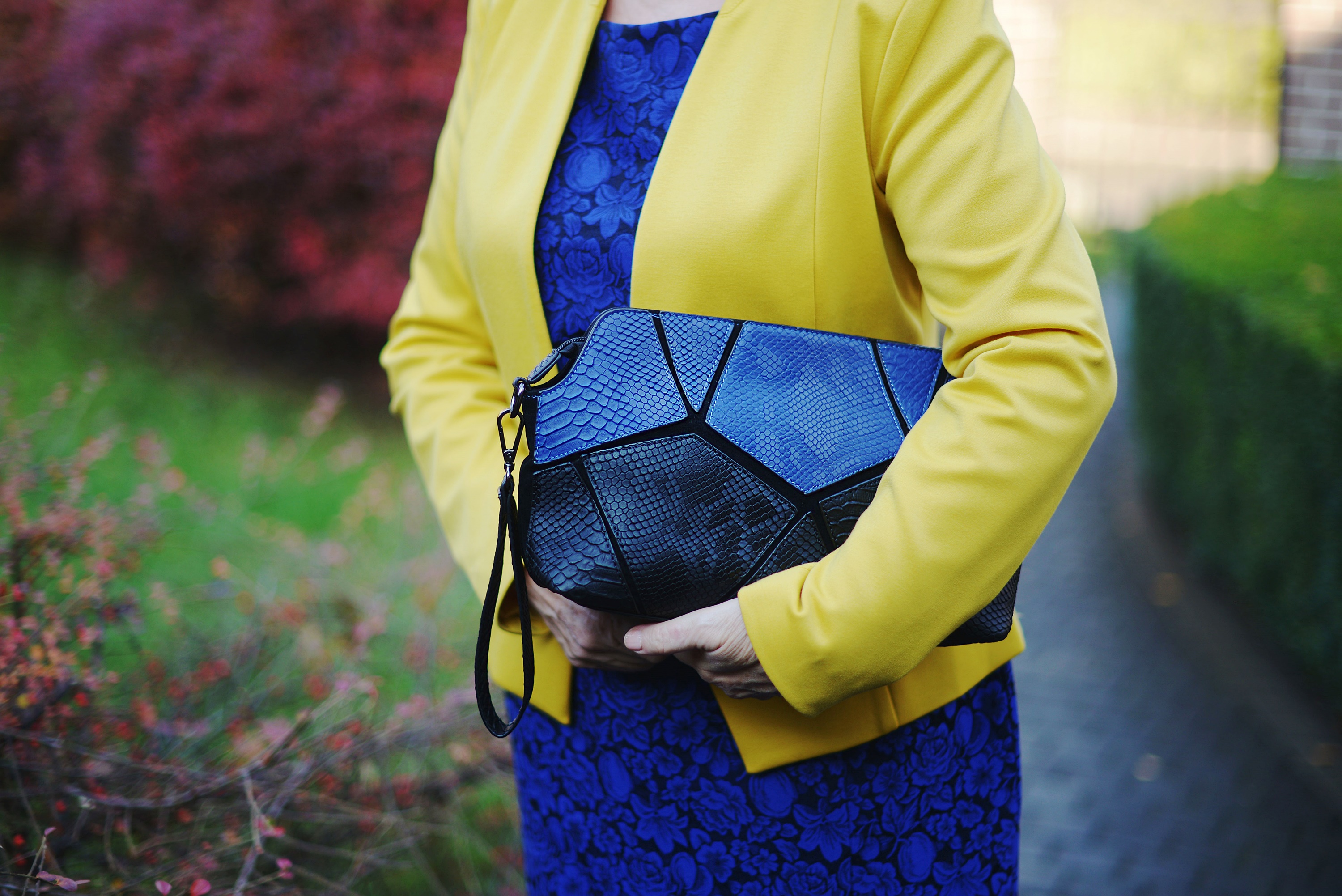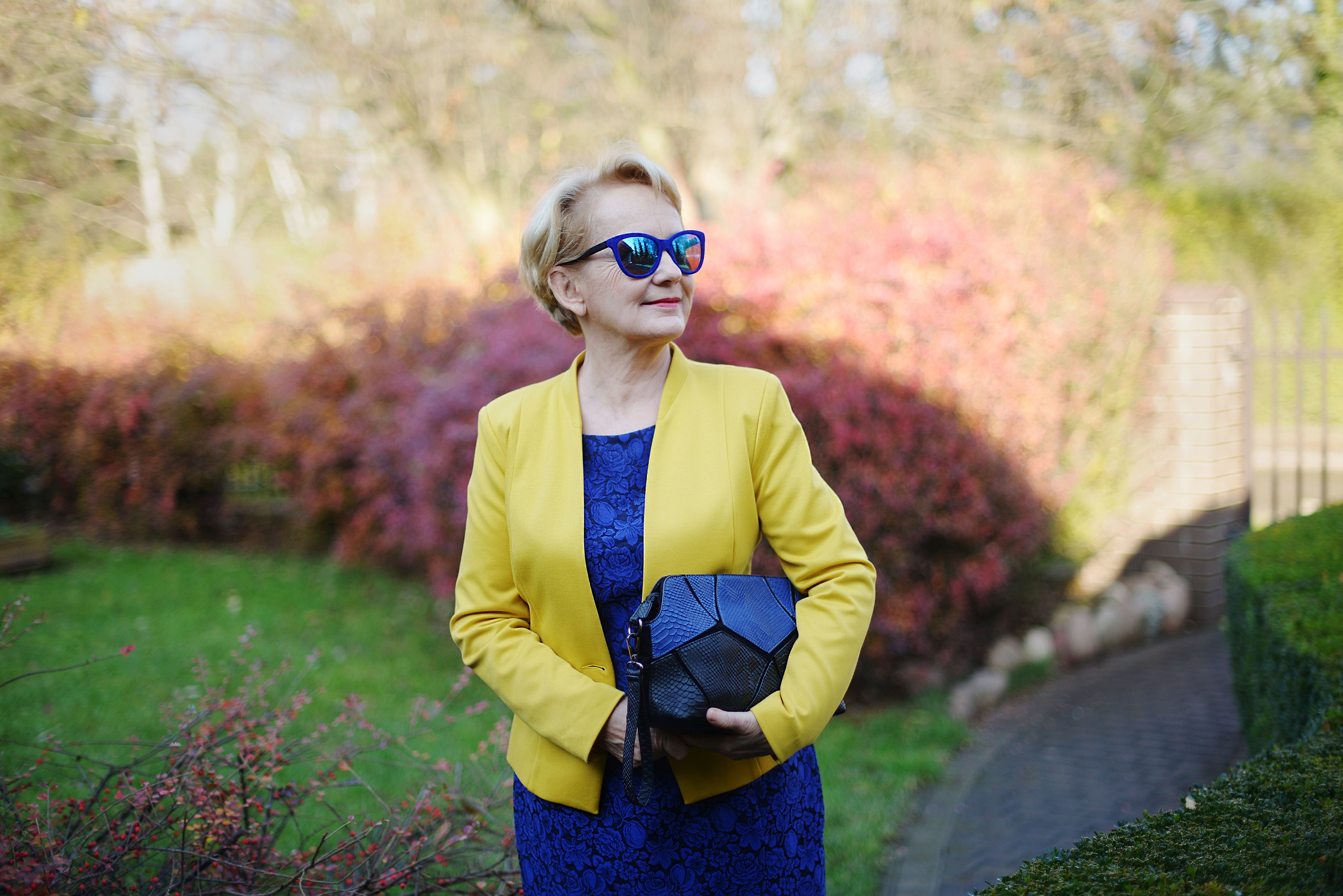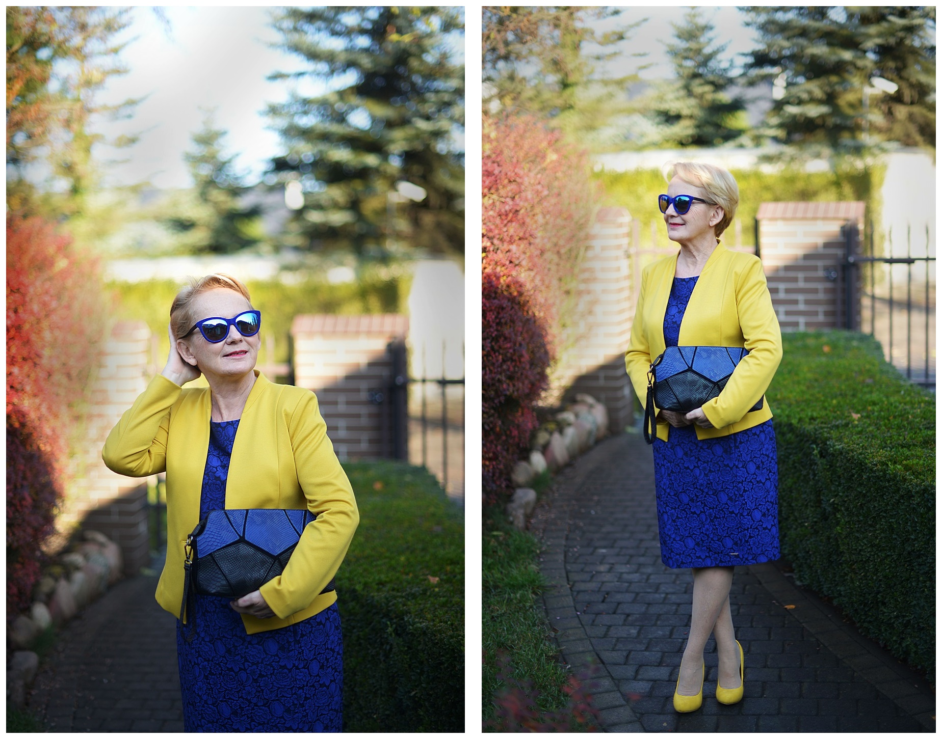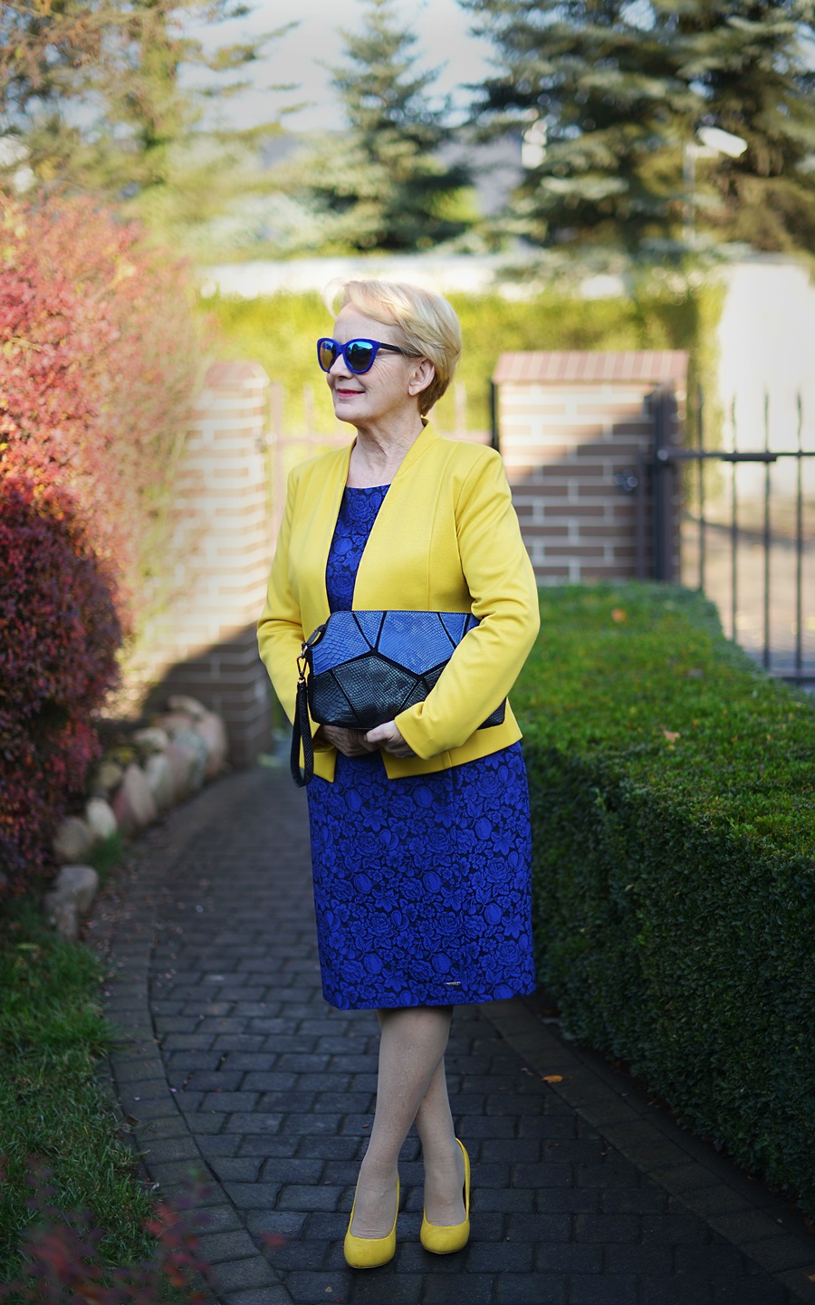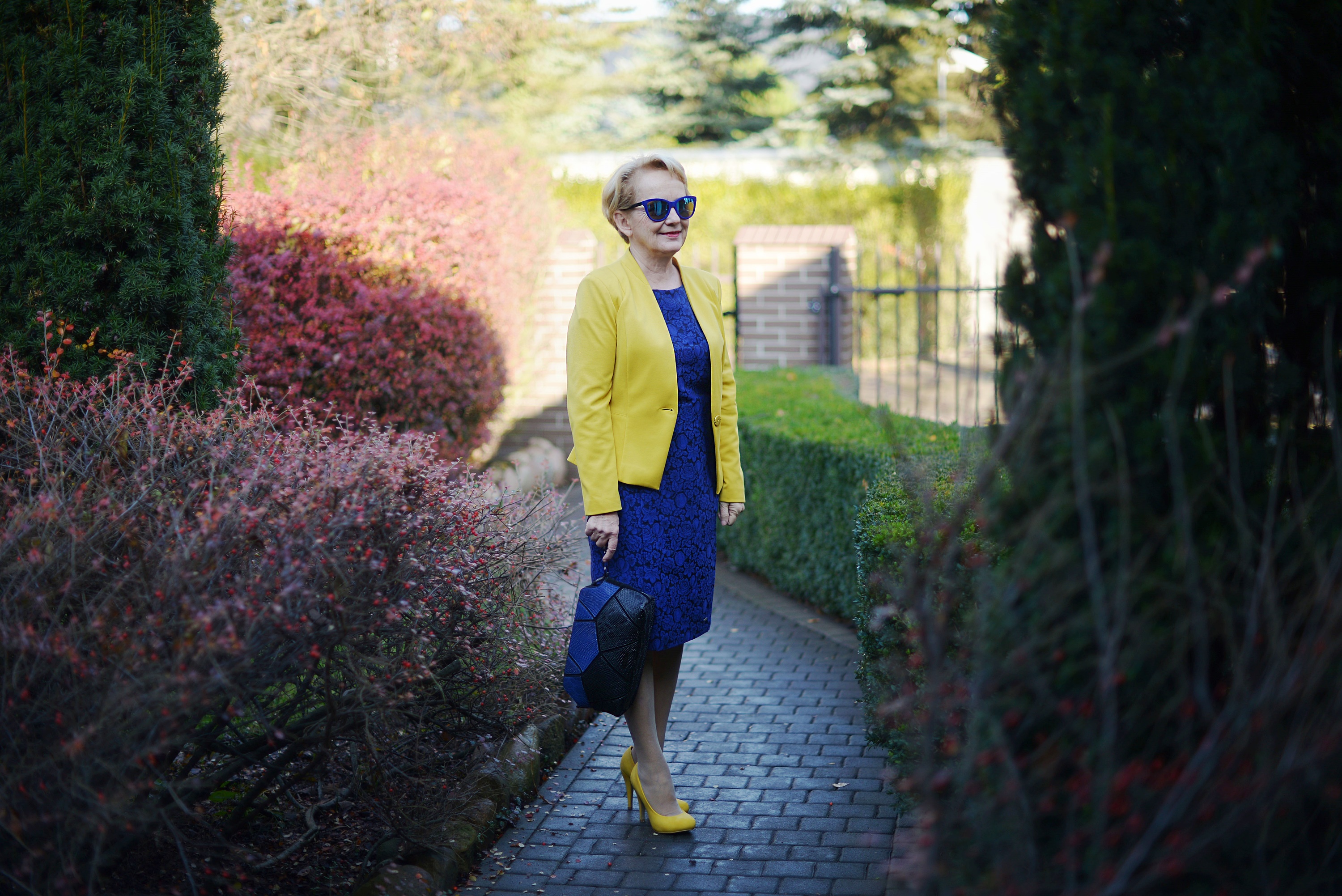 Wbrew wszelkim regułom na święta także możemy ubrać się kolorowo, dlatego proponuję Wam kobaltową sukienkę i żółty żakiet.