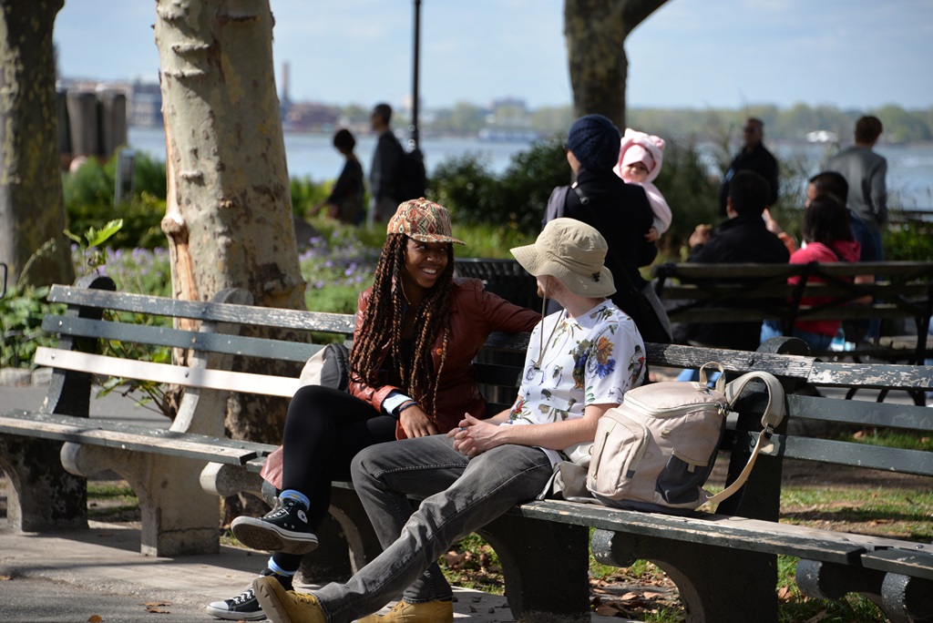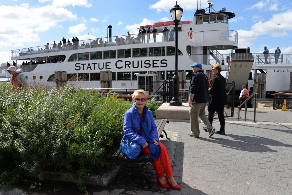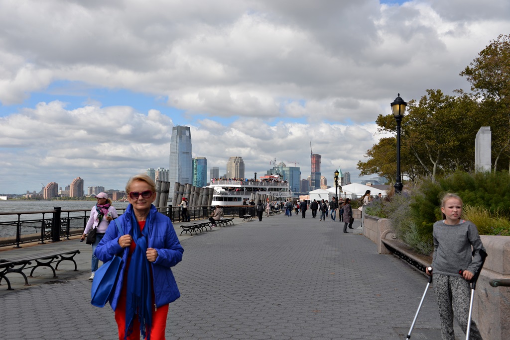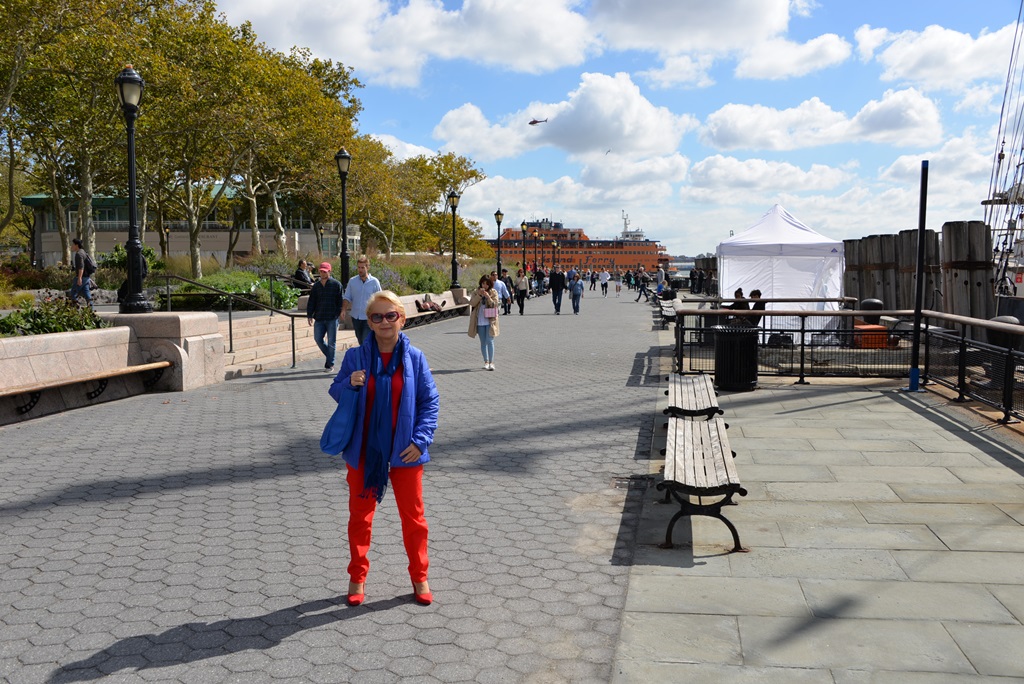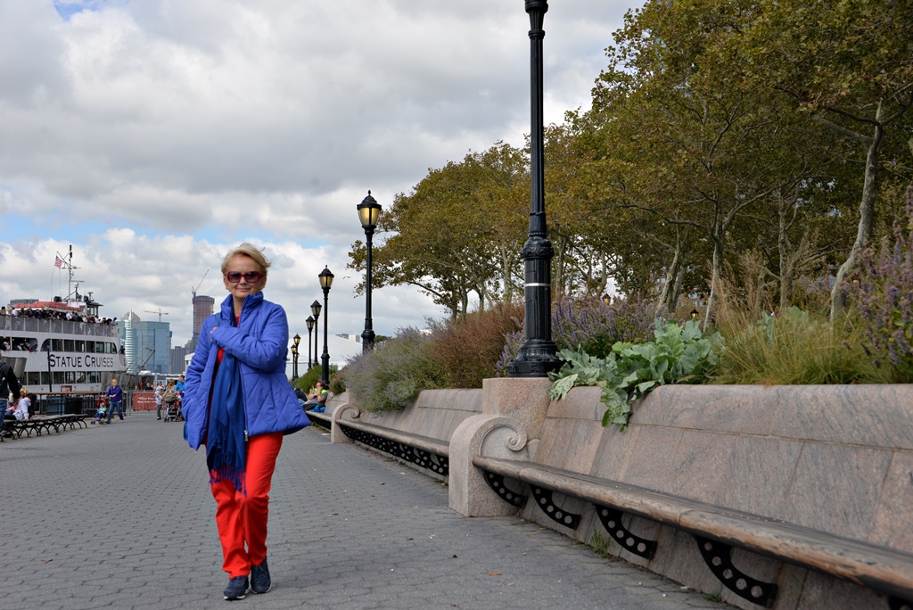Następnie poszłysmy z Krysią (autorką zdjęć) do Battery Park na południowym cyplu Manhattanu. W tym miejscu rzeką Hudson (jej długosć ma 507 km) wpływa do Zatoki Upper New York Bay i specjalnymi kanałami łączy się z Wielkimi Jeziorami oraz rzeką Świętego Wawrzyńca. Z tego nabrzeża odchodzą promy wożące turystów do Statuy Wolnosci.