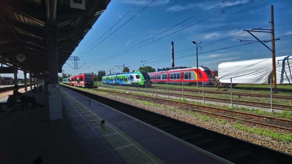A to już dworzec kolejowy w Bydgoszczy. Znajduje się tu jedna z największych fabryk wagonów kolejowych w Polsce. Zobaczcie, jakie są kolorowe.