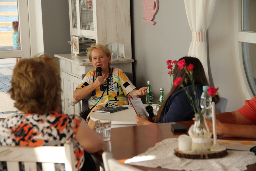 To bardzo miłe i twórcze spotkanie odbyło się w Herbaciarni „Tea Lady” znajdującej się na jednym z pomostów nad jeziorem. Przeprowadziła je w formie wywiadu przemiła Pani Patrycja.