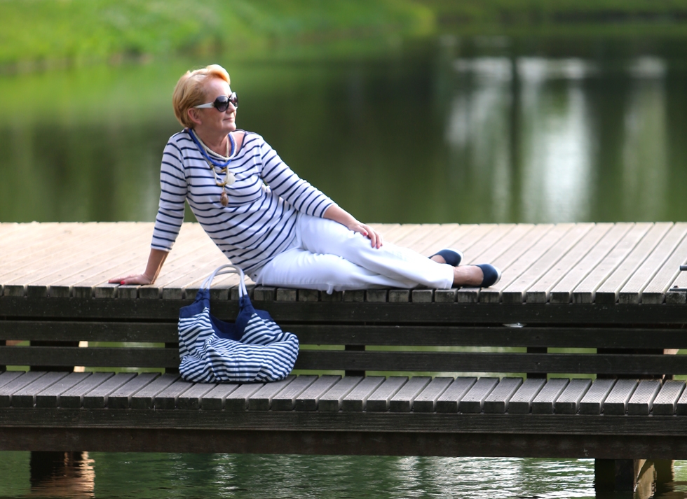 Podejrzewam, że każda z Was ma w szafie bluzkę w paski, białe spodnie /oby nie 3/4 lub do kolan – bo te na większości kobiet wyglądają fatalnie/ i plażową torbę.
