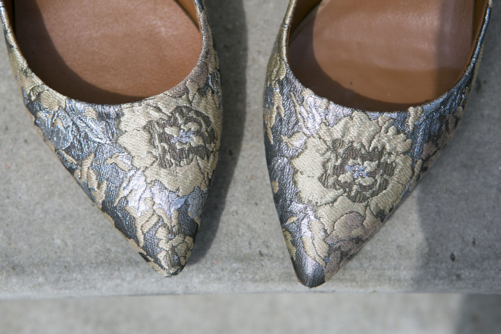 Przepiękne i wygodne złoto-szare szpilki-kaczuszki (caterina.pl) dopełniają całości.