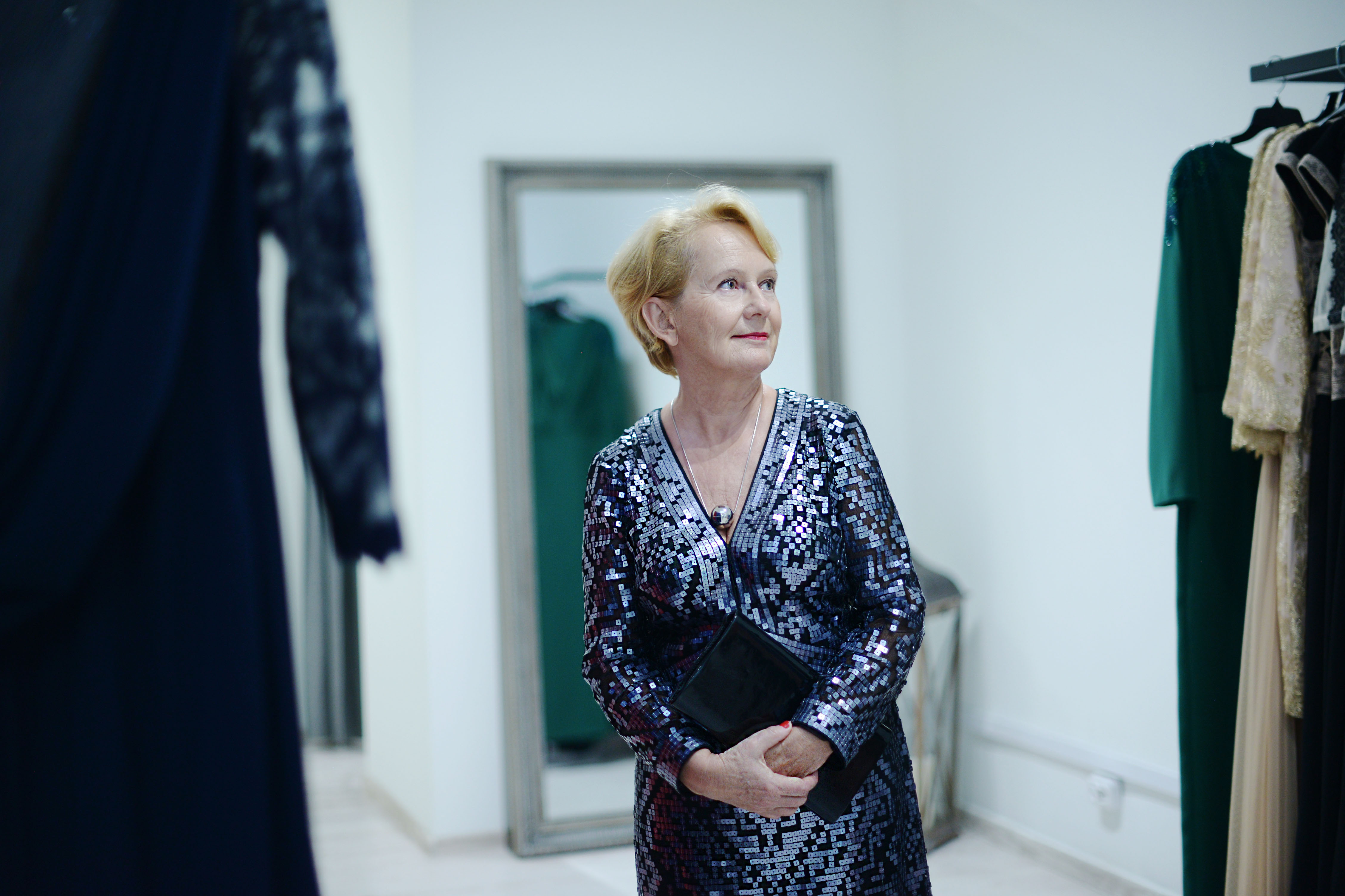 Bardzo elegancka sukienka, mimo, że z błyszczących cekinów to chyba przez fason i długość, nasuwa mi się określenie dyskretna. Świetny wybór 🙂 Pozdrawiam serdecznie, Ola