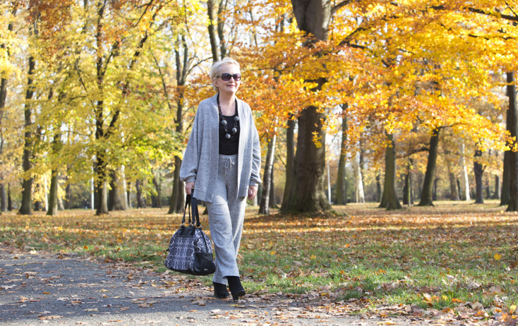 Na jesienny spacer po parku ubrałam się w cieplutki i milutki szary dres, niedawno zakupiony w H&M, który bardzo dobrze służył mi na urlopie.