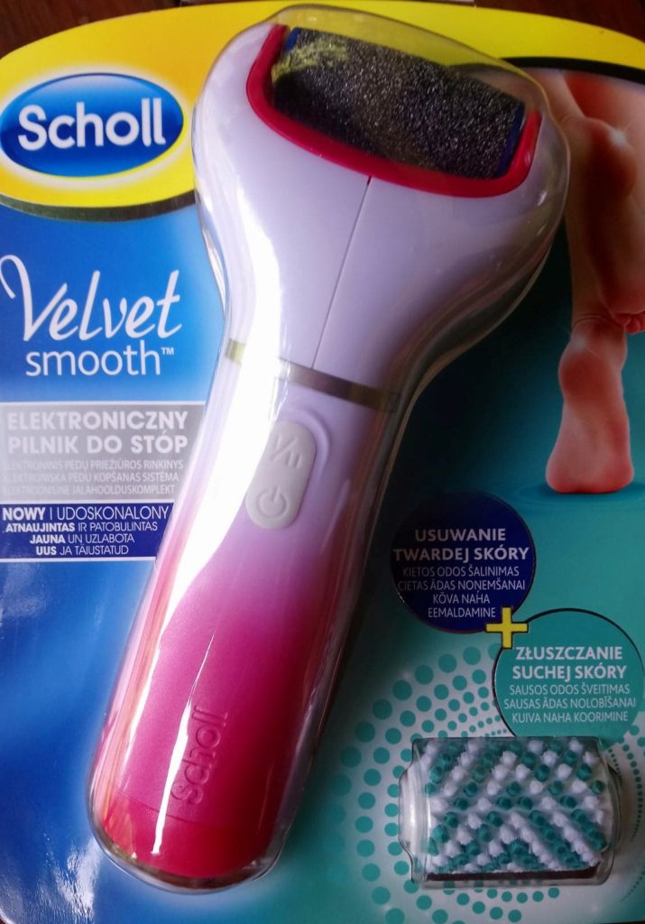 Dostałam także w prezencie elektroniczną skrobaczkę Scholl’a, która nie tylko usuwa twardą skórę stóp,