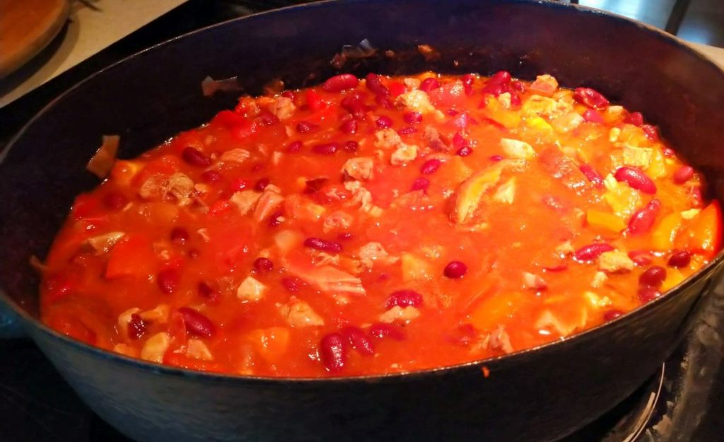 Wskazana jest również papryka (3 szt i powinna być w różnych kolorach – wtedy potrawa wygląda bardziej smakowicie). Wszystko razem duszę ok. 1,5 godziny, z tym, że pomidory i fasolę dodaję na 0,5 godziny przed końcem gotowania. Solę i pieprzę do smaku. Podaję ją z chlebem lub z ryżem.