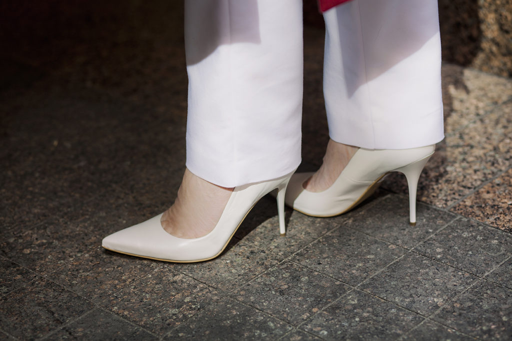 W parze z białymi szpilkami optycznie wydłużają i wyszczuplają nogi.