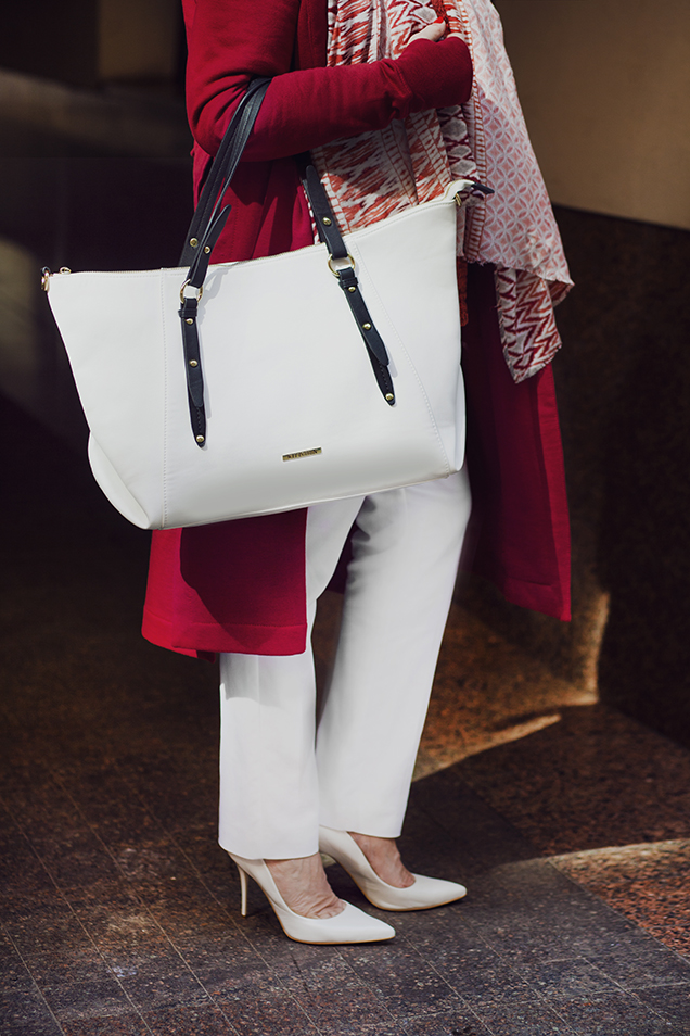 W salonie WITTCHEN zdecydowałam się na dużą torbę z czarnymi rączkami. Można ją nosić także na długim pasku. Jest pakowna i pasuje do wielu, nie tylko wiosennych i letnich, rzeczy.