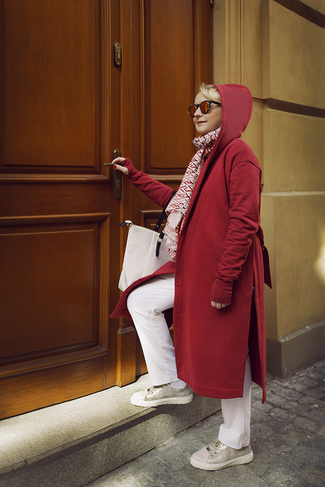 W salonie marki OLSEN zdecydowałam się także na bardzo wygodne spodnie w kolorze zbliżonym do kurtki. Wszystkie zakupy realizowałam w ten sposób, aby można było zrobić z nich kilka zestawów. Moim zdaniem właśnie w ten sposób można uzyskać efekt kompatybilnej szafy, w której ubrania pasują do siebie, co pozwala zbudować z nich dowolną ilość zestawów.