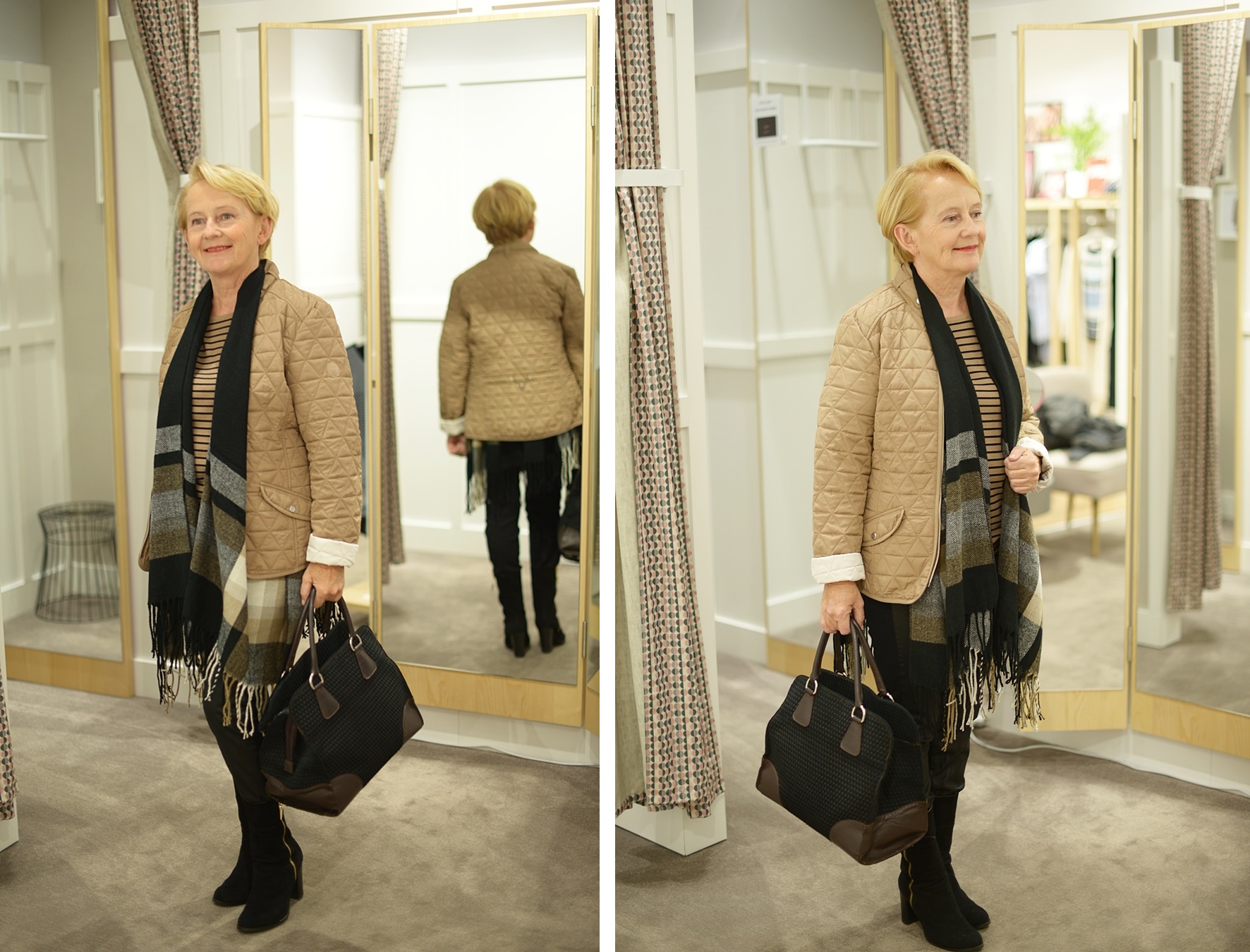 beż to niekoniecznie Twój kolor ale z tym szalem wygląda fantastycznie, a torba marzenie! 🙂